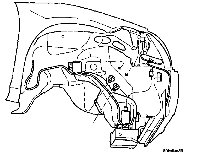 If replacing reservoir, the windshield washer pump and the speed control vacuum reservoir must be transferred to the new washer reservoir.