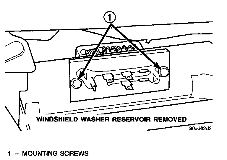 The blower motor resistor is located in the bulkhead of the vehicle under the cowl trim panel and behind the windshield washer reservoir.REMOVAL