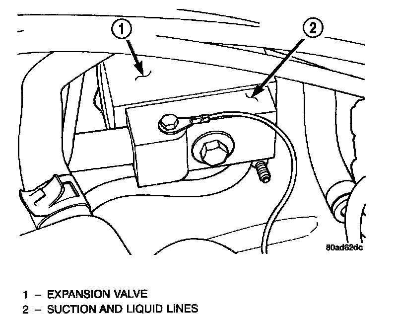 3. Remove bolt attaching suction and liquid lines to expansion valve.
