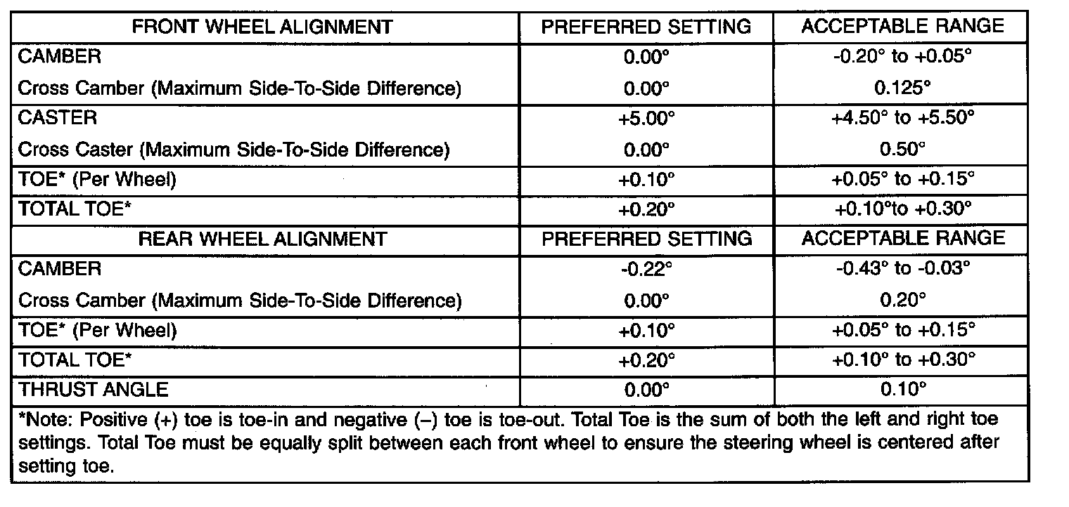 NOTE: All wheel alignments are to be set with vehicle at proper curb height. Refer to Curb Height Measurement for the service procedure on checking curb height.