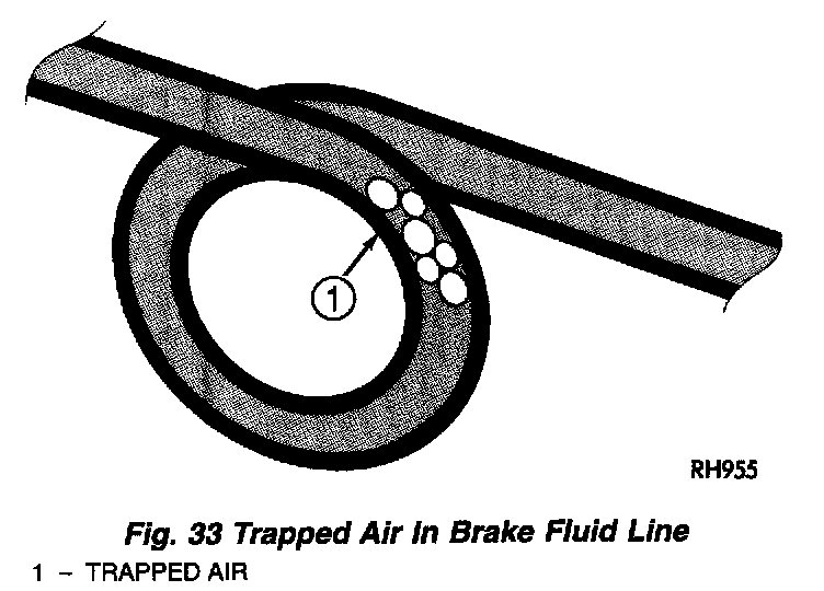 When bleeding the brake system, some air may be trapped in the brake lines or valves as far upstream as ten feet from the bleeder screw. Therefore, it is essential to have a fast flow of a large volume of brake fluid when bleeding the brakes to ensure all the air gets out.