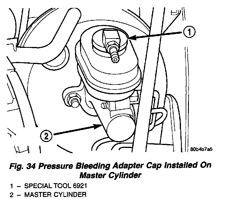 PRESSURE BLEEDING PROCEDURECAUTION: Before removing the cap from the master cylinder fluid reservoir, thoroughly clean the cap and fluid reservoir to prevent dirt from dropping into the master cylinder fluid reservoir.