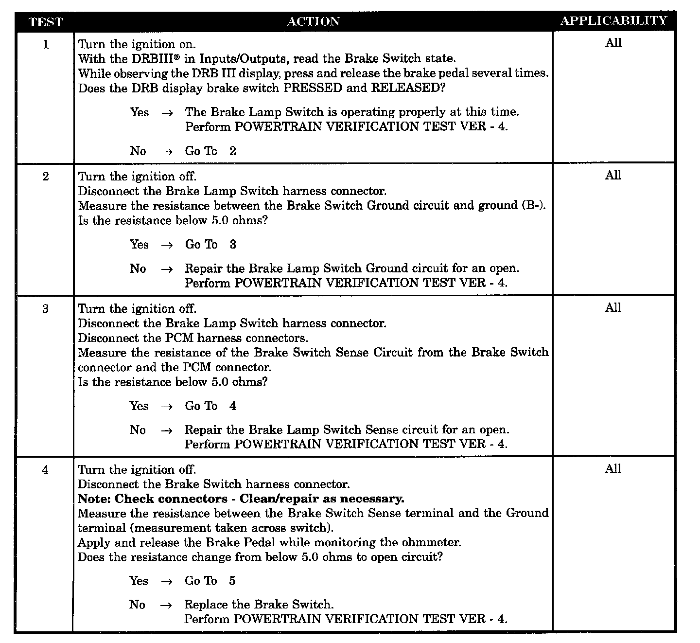 CHECKING BRAKE SWITCH OPERATION WITH NO DTC'S