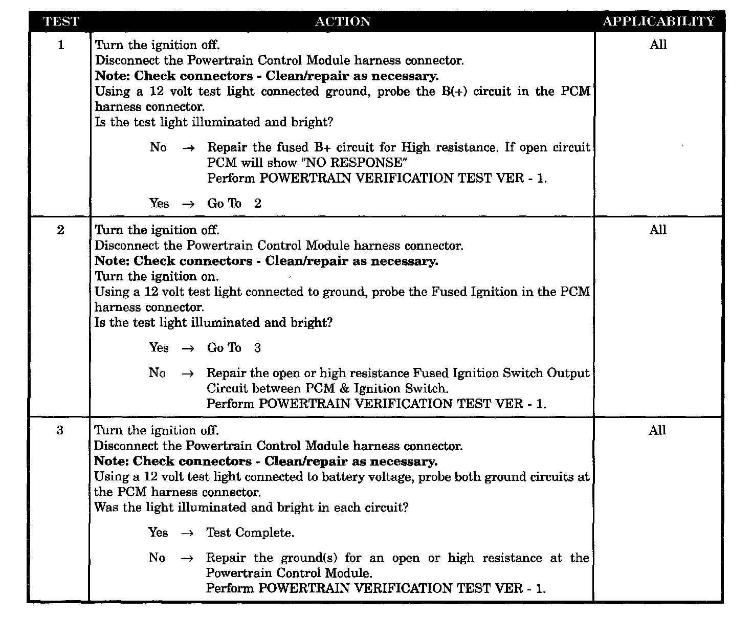 Checking the PCM Power and Ground Circuits