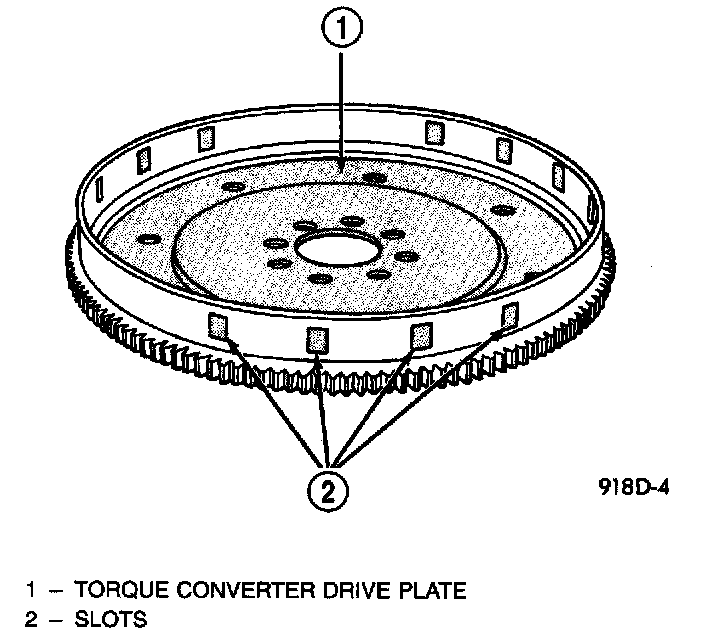The Crankshaft Position Sensor detects slots cut into the transmission driveplate extension. There are 3 sets of slots. Two sets contain 4 slots and one set contains 5 slots, for a total of 13 slots. Basic timing is set by the position of the last slot in each group. Once the Powertrain Control Module (PCM) senses the last slot, it determines which piston will be next at TDC from the Camshaft Position Sensor input. It may take the PCM one engine revolution to determine crankshaft position.