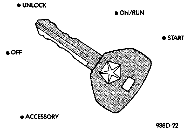 The ignition key rotates the cylinder to 5 different detents: