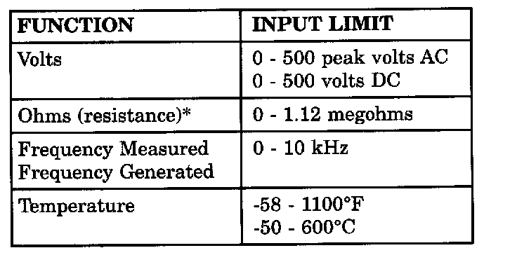 *Ohms cannot be measured if voltage is present. Ohms can be measured only in a non-powered circuit.