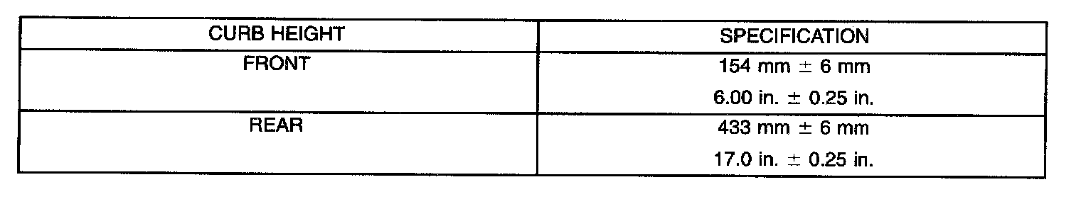 Curb height is to measured from specific points on the vehicle's frame. Refer to Curb Height Measurement.