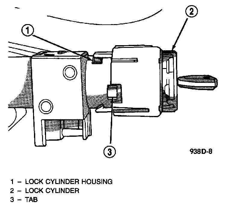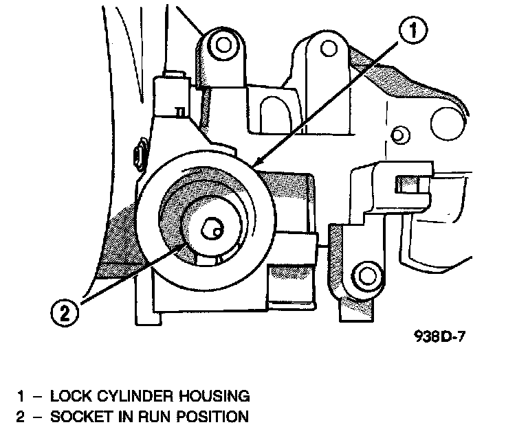 4. Turn the ignition key to the RUN position. When ignition switch is in the RUN position, the lock cylinder retaining tab will depress.