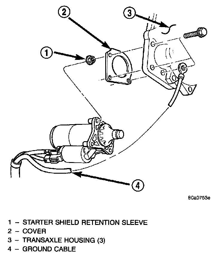 4. Remove three bolts attaching starter to transmission housing and remove starter from vehicle.