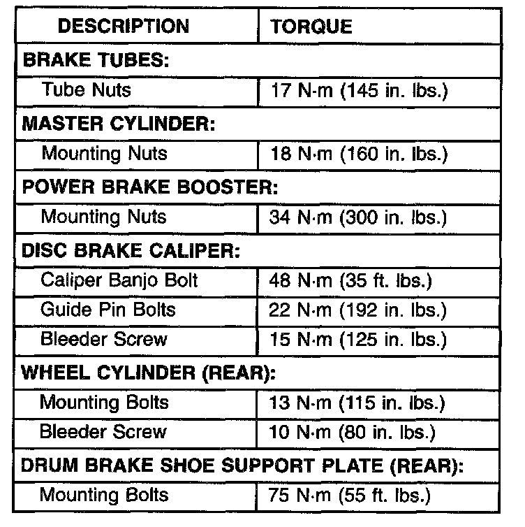 Brake Fastener Torque Specifications part 1 of 2