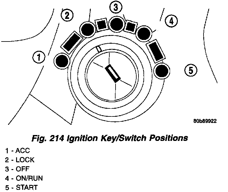 3. Turn the ignition key to the "OFF" or "ON / RUN" position (Fig. 214).