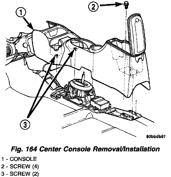 2. Remove the center console assembly as shown in (Fig. 164).