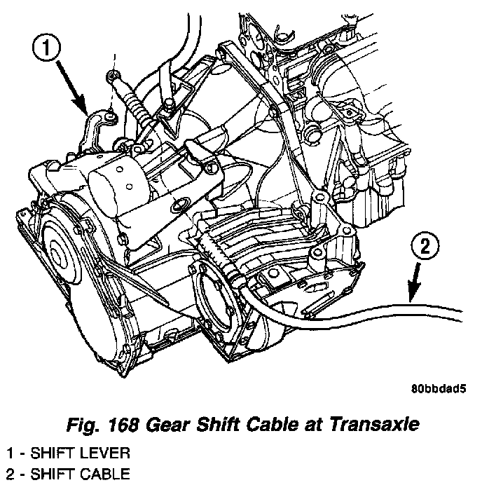 5. Install gear shift cable to bracket and connect to shift lever (Fig. 168).
