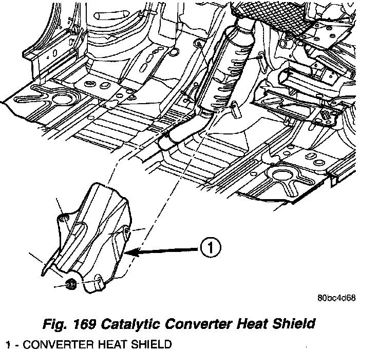 4. Install catalytic converter heat shield (Fig. 169).