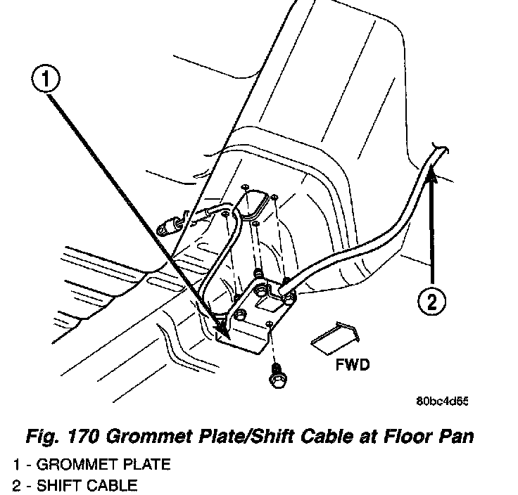 13. Remove remaining grommet plate screw and remove cable assembly from vehicle (Fig. 170).