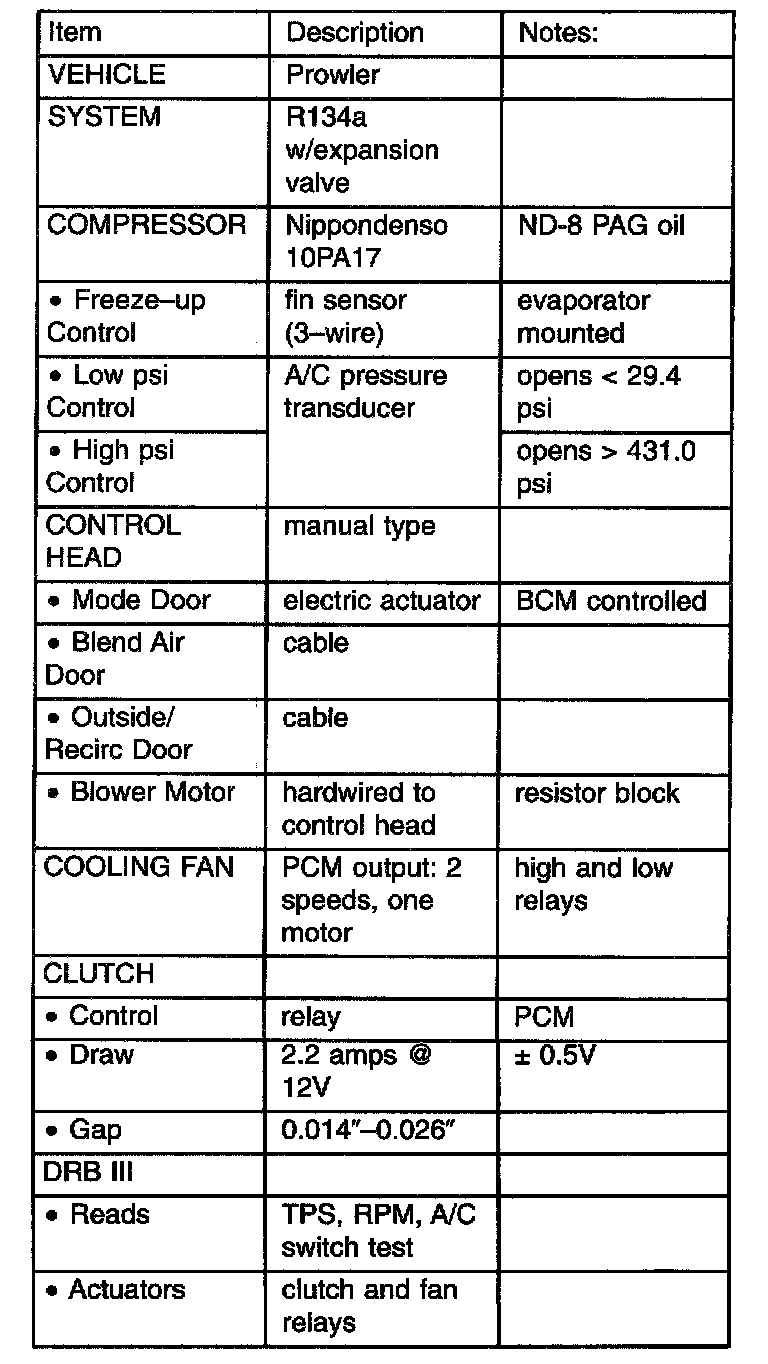 NOTE: Prowler uses a Body Control Module (BCM) to control the mode door operation. The BCM also monitors the evaporator 3-wire fin sensor and sends the A/C clutch request signal over the CCD to the PCM.