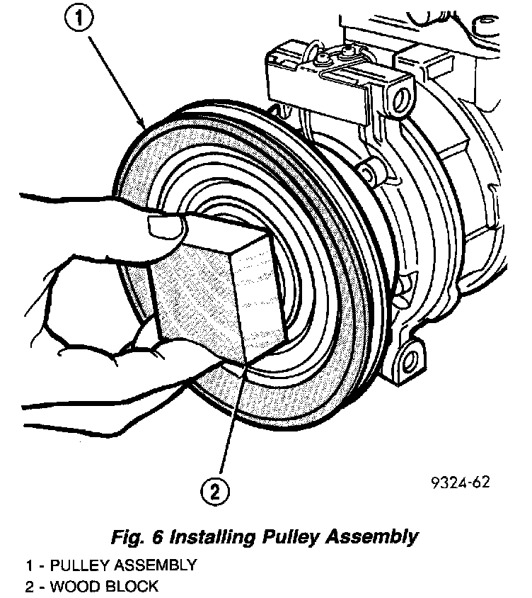 3. Install pulley assembly to compressor. If necessary, tap gently with a block of wood on the friction surface.