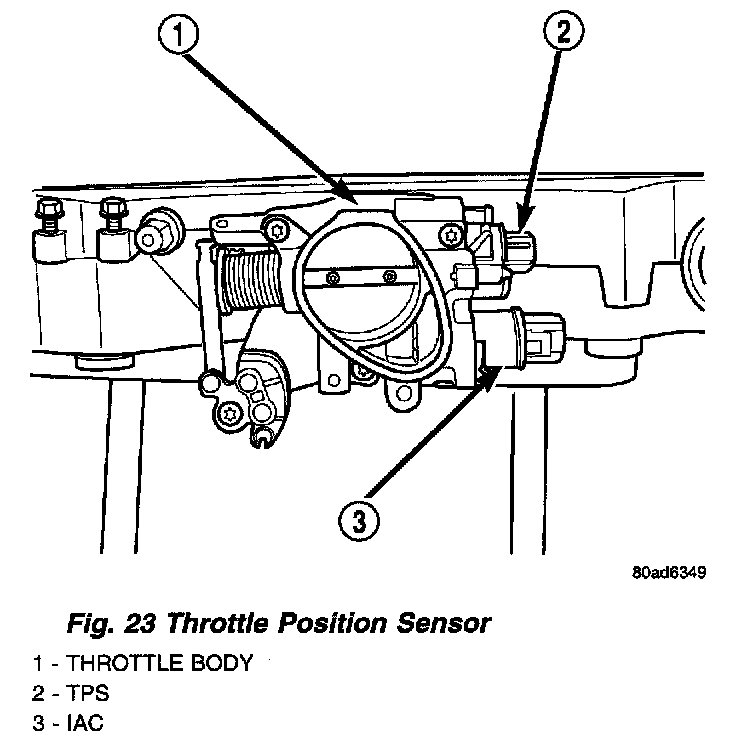 The throttle position sensor mounts to the side of the throttle body. The sensor connects to the throttle blade shaft. The TPS is a variable resistor that provides the Powertrain Control Module (PCM) with an input signal (voltage).