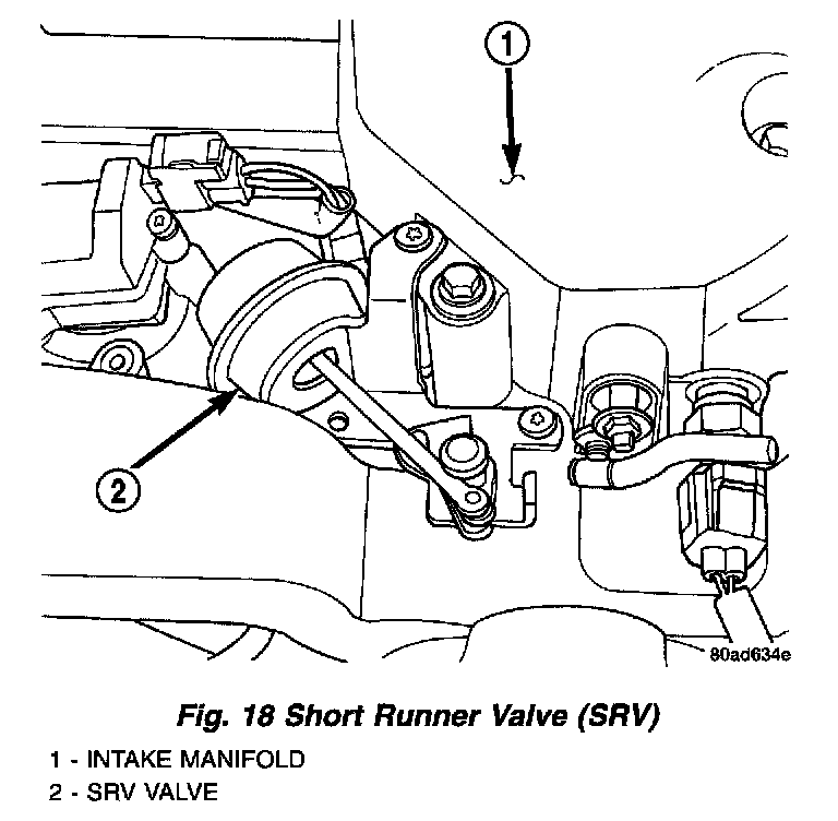 The [1][2]SRV system operates under WOT conditions above 5000 rpm to maximize engine performance. When actuated by the PCM, the SRV solenoid energizes, allowing mechanical linkage to redirect the intake air flow to six short runners. The PCM looks for a current spike when actuating the solenoid. If the spike is not present, the PCM sets the DTC.