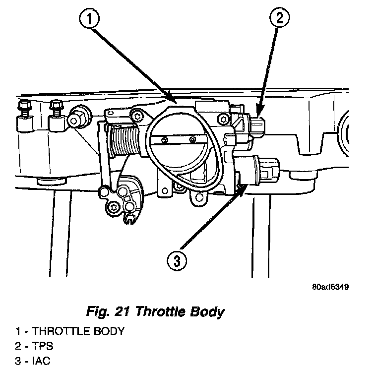 Filtered air from the air cleaner enters the intake manifold through the throttle body. The throttle body contains an air control passage controlled by an Idle Air Control (IAC) motor. The air control passage is used to supply air for idle conditions. A throttle valve (plate) is used to supply air for above idle conditions.