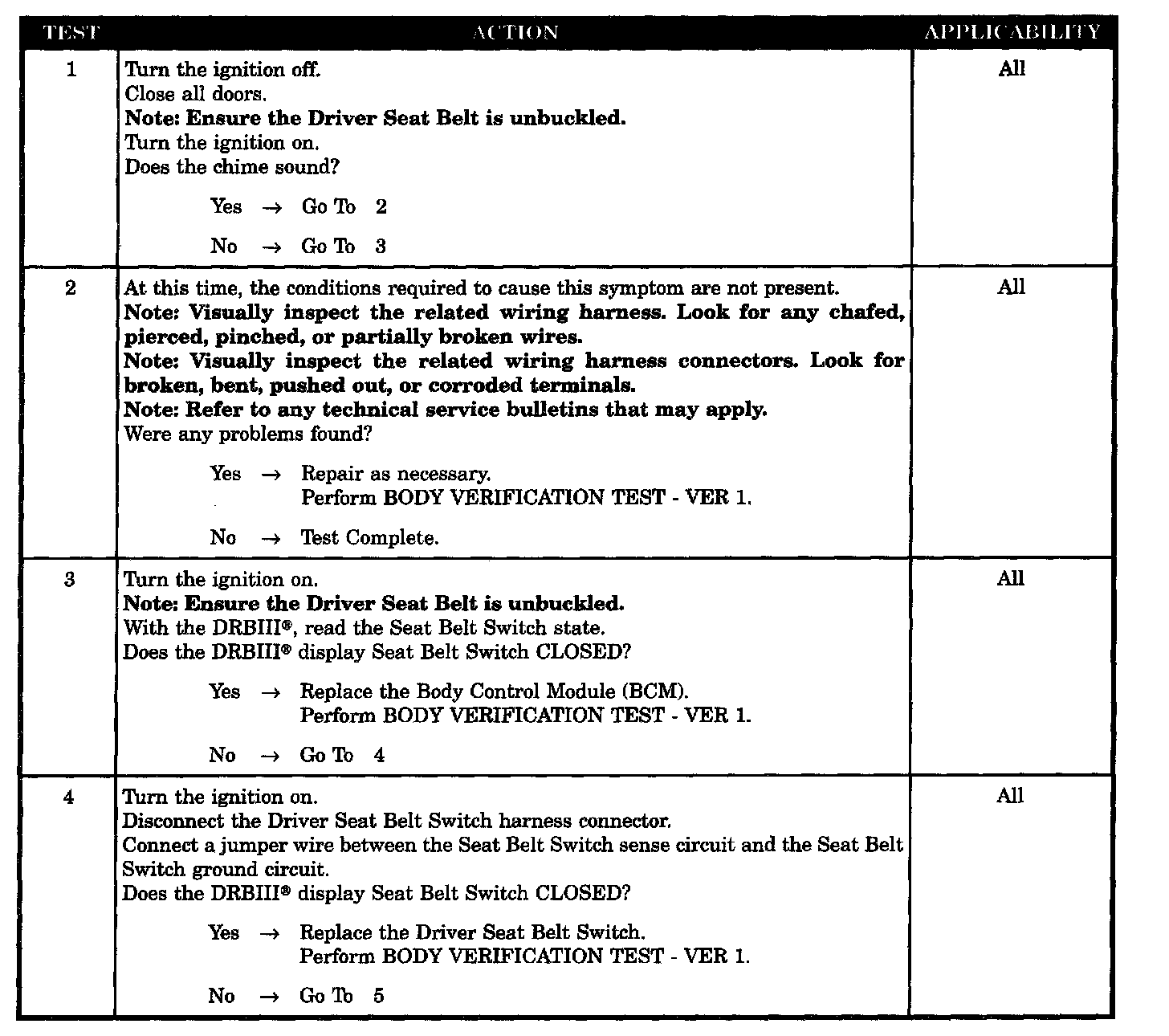 Chime Inoperative With Drivers Seat Belt Unfastened