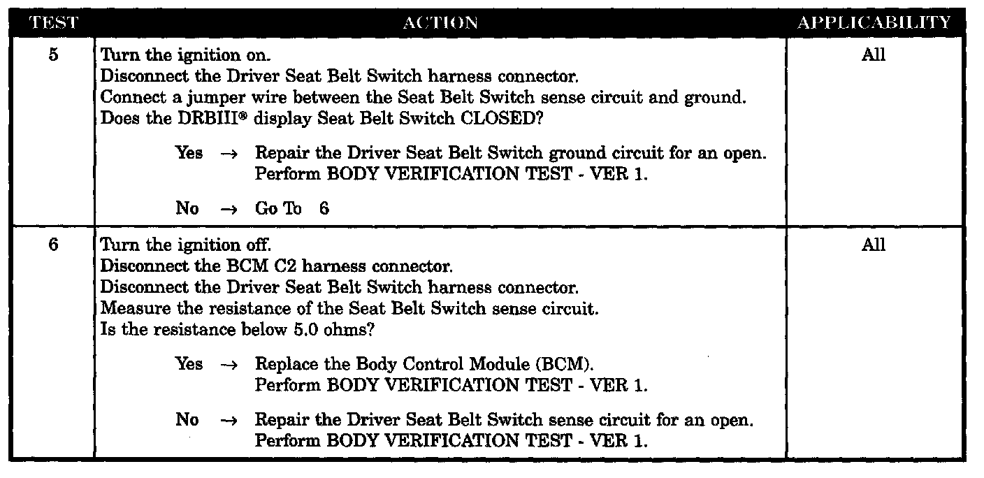 CHIME INOPERATIVE WITH DRIVER SEAT BELT UNFASTENED