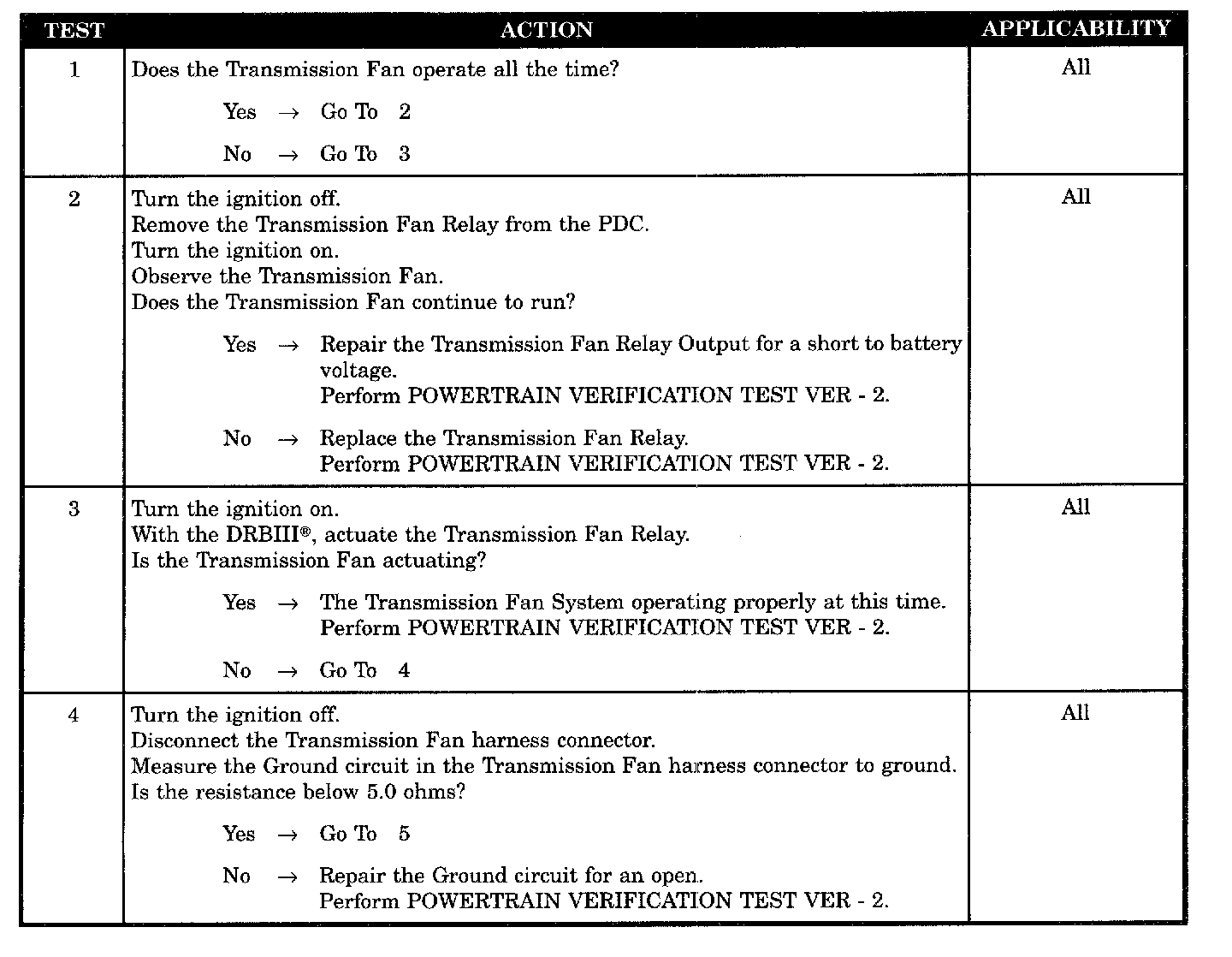 CHECKING TRANSMISSION FAN RELAY OUTPUT