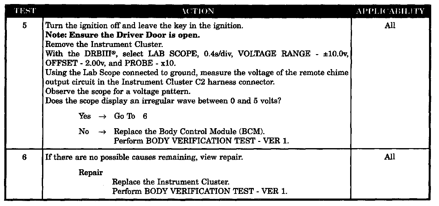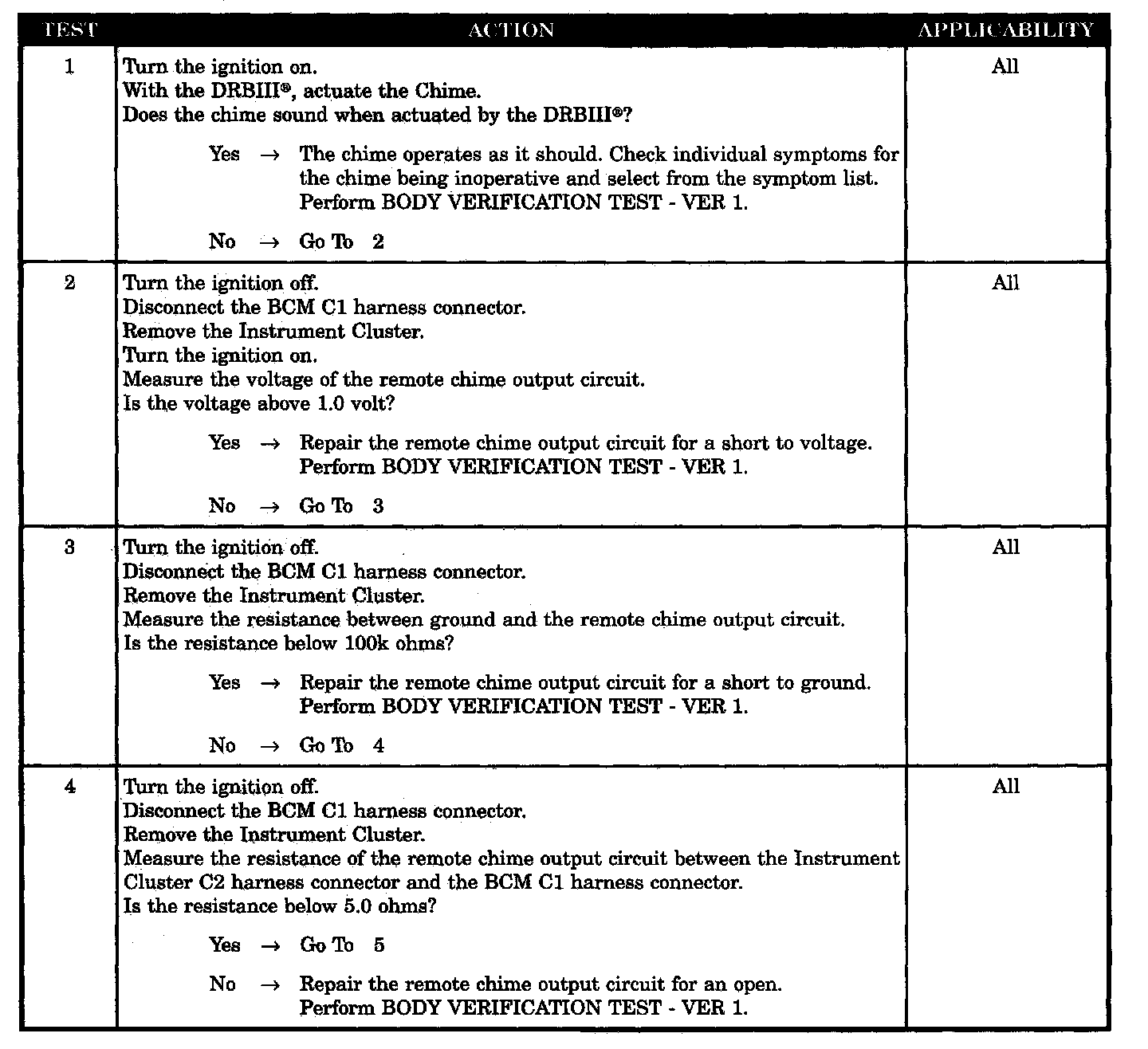 CHIME INOPERATIVE AT ALL TIMES