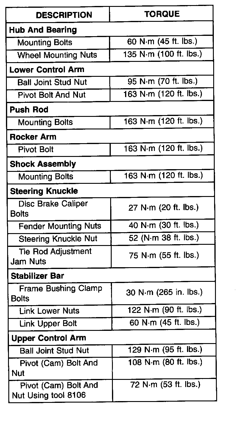 SPECIFICATIONSFRONT SUSPENSION FASTENER TORQUE