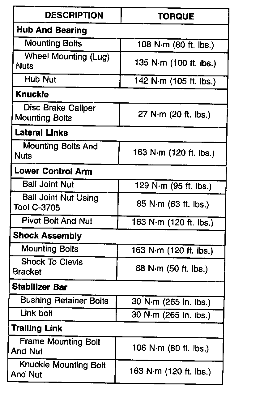 Link Lower Nuts 122 Nm (90 ft. lbs.)