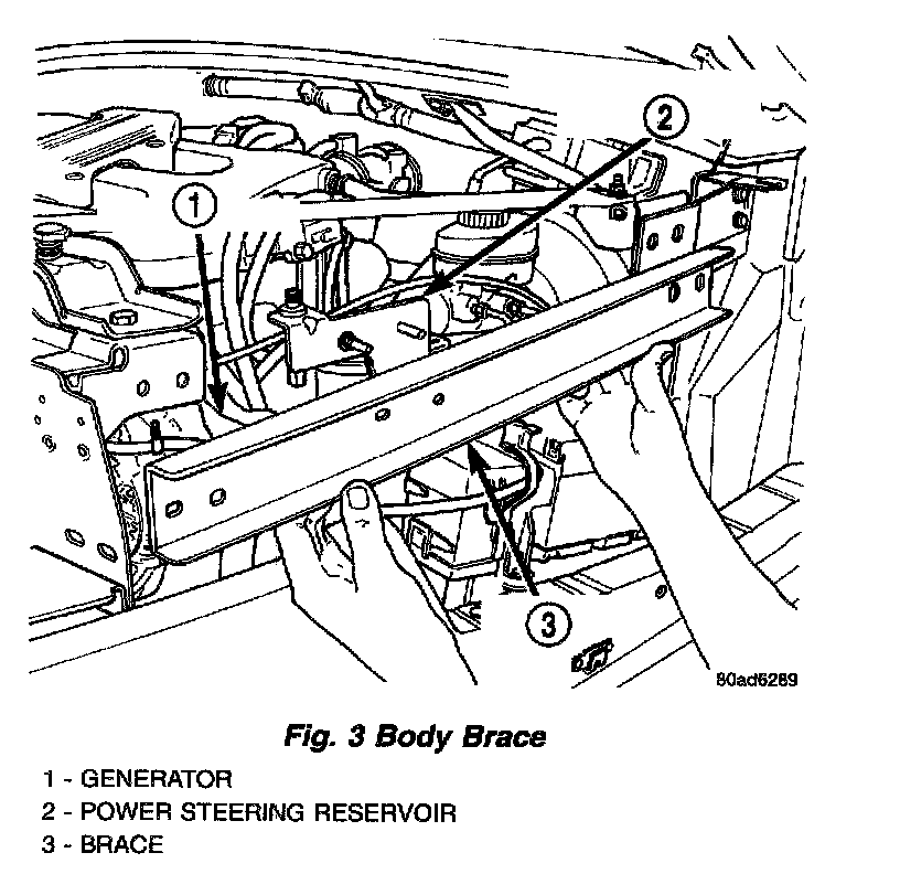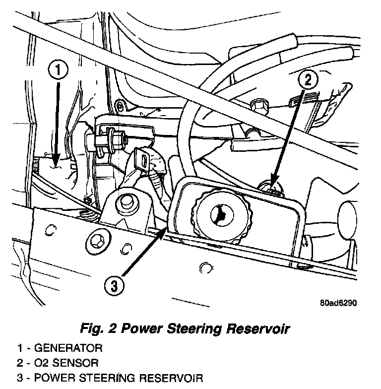4. Remove power steering reservoir (Fig. 2).
