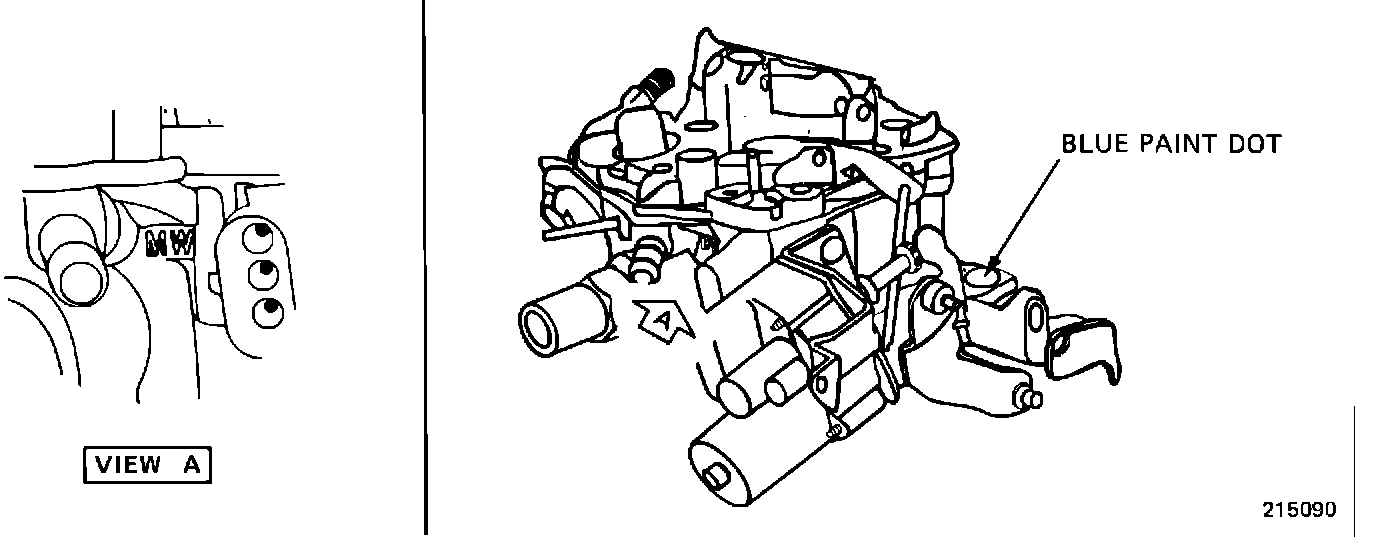Float bowl assemblies that have the letters "MW" (machined well) embossed next to the throttle position sensor electrical connector, use the red lip (with garter spring) viton accelerator pump only. Some 1982-1983 carburetors with a machined well (MW) used during production, were assembled with the red viton pump. If the carburetor does not have the red viton pump, a blue dot will be on the rear of the throttle body base near the mounting hole see Figure 1 below).
