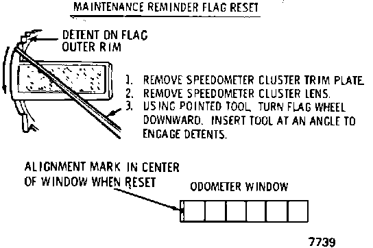 In the event a vehicle is encountered with the emission maintenance flag displayed, and it does not qualify for oxygen sensor maintenance (California with automatic or manual transmission and Federal with manual transmission), the flag should be reset at no charge to the customer (see illustration).