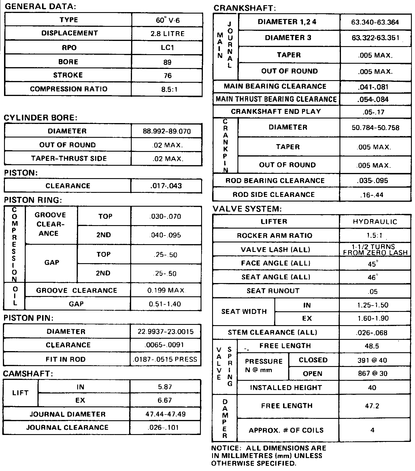 Firebird V6-173 2.8L VIN 1 2-bbl