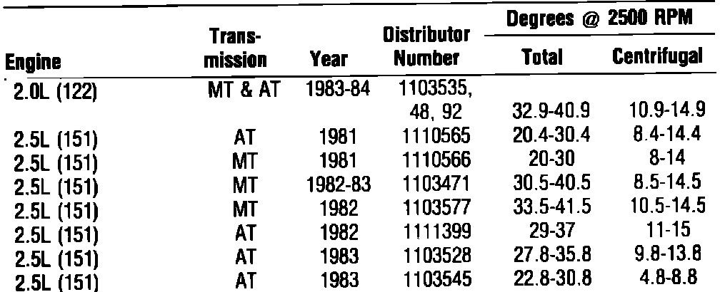 DISTRIBUTOR TIMING ADVANCE: