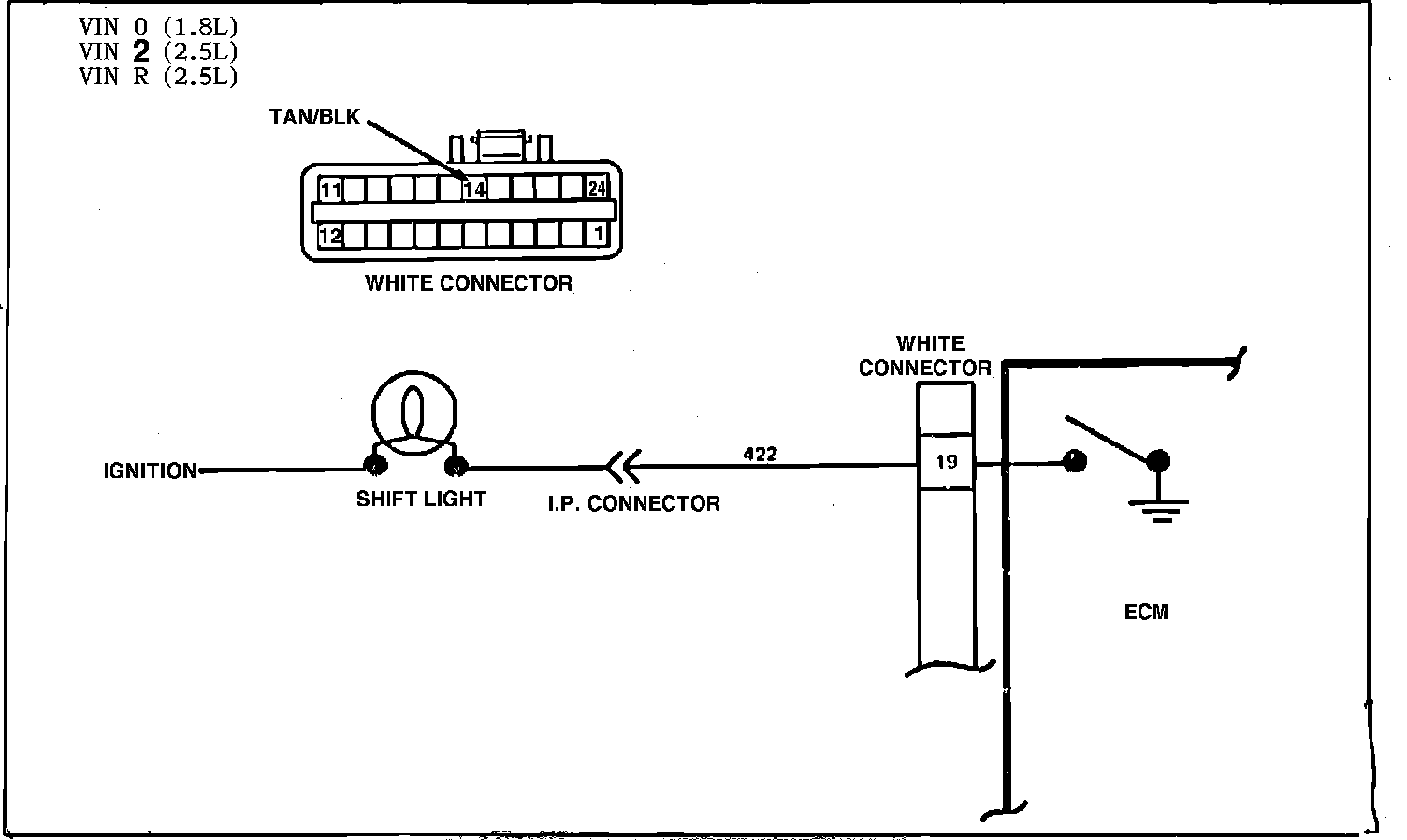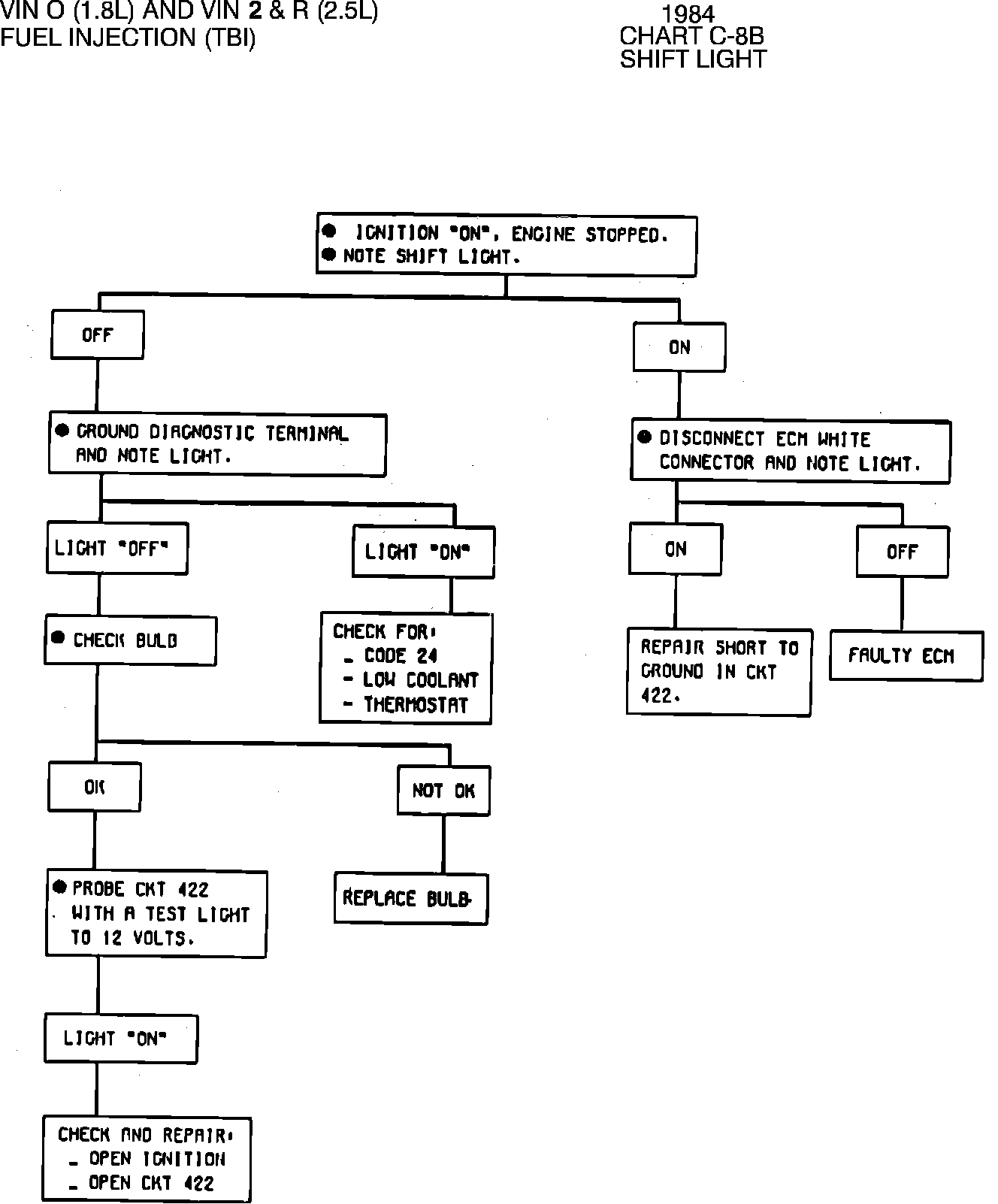 The shift light indicates the best transmission shift point for maximum fuel economy. The light is controlled by the ECM and is turned on by grounding terminal 19, CKT 422.