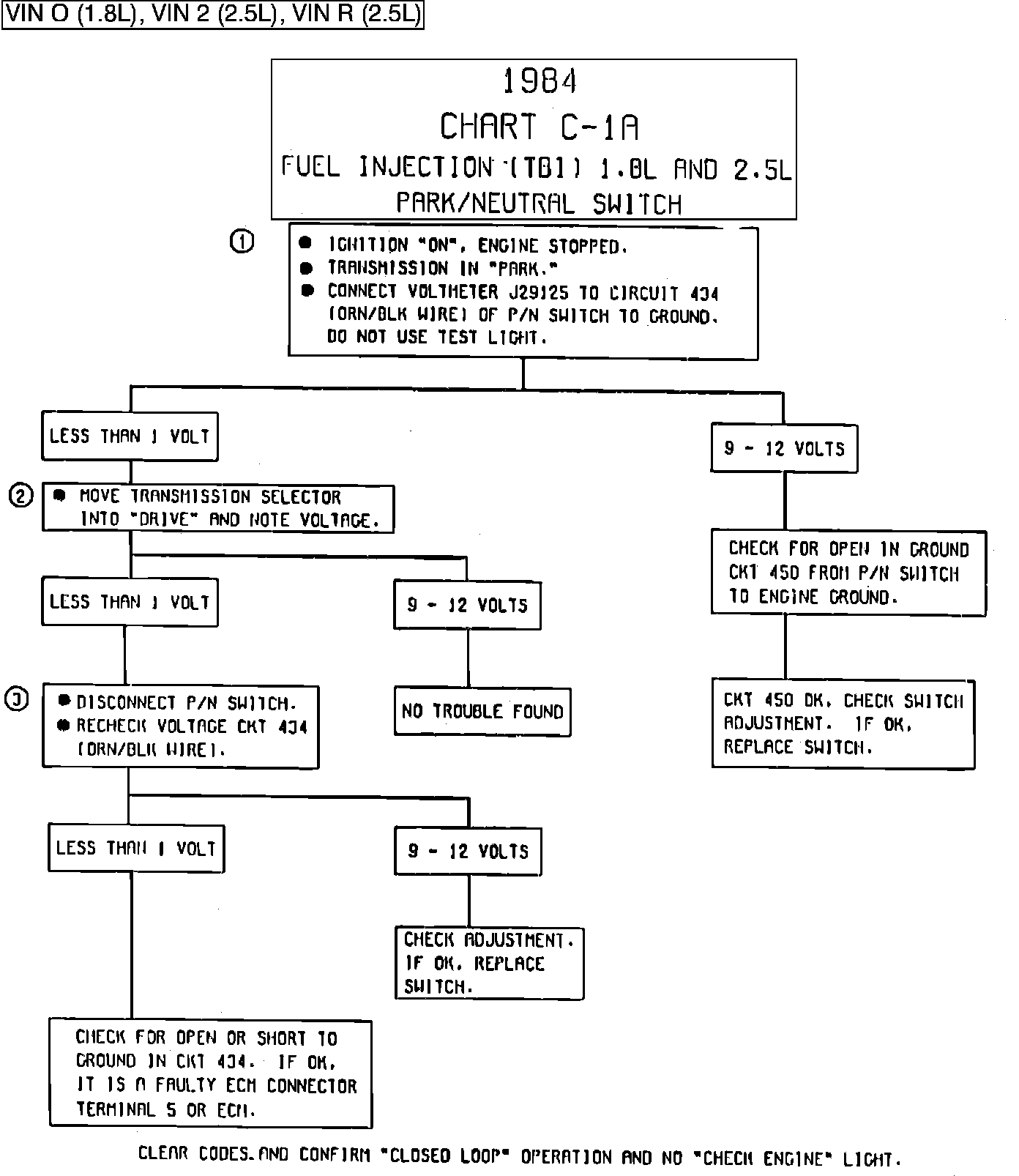 CHART C-1A, PARK/NEUTRAL SWITCH