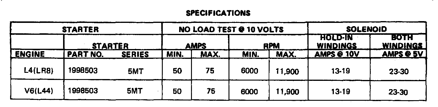 STARTER SPECIFICATIONS