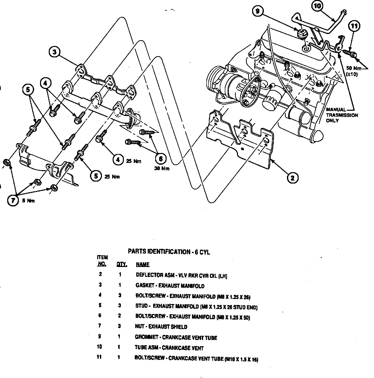 t. Install crossover to manifold bolts using torque values described in ILLUSTRATION A & B.