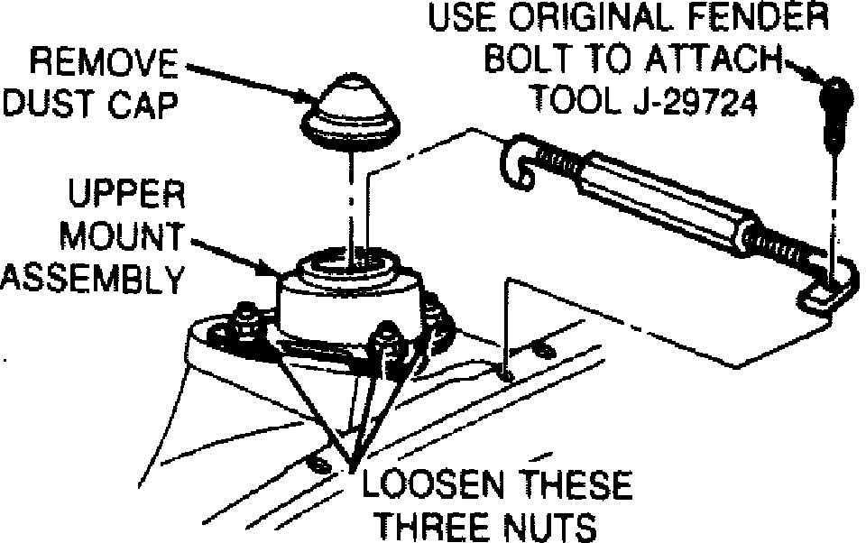 7. Remove tool J-29724, and install fender bolt and dust cap.