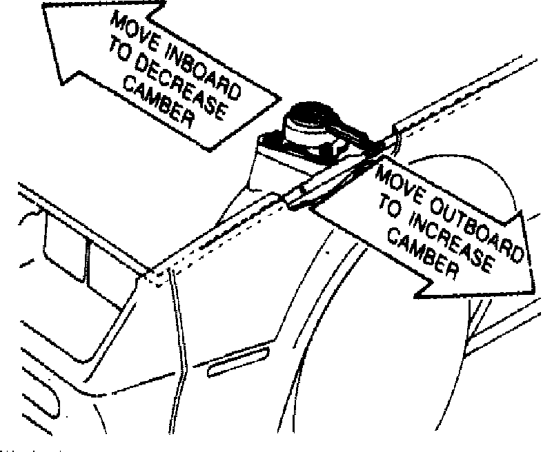 6. When correct camber and caster readings have been obtained to specifications, tighten the three nuts attaching the mount assembly to 20 ft. lbs.