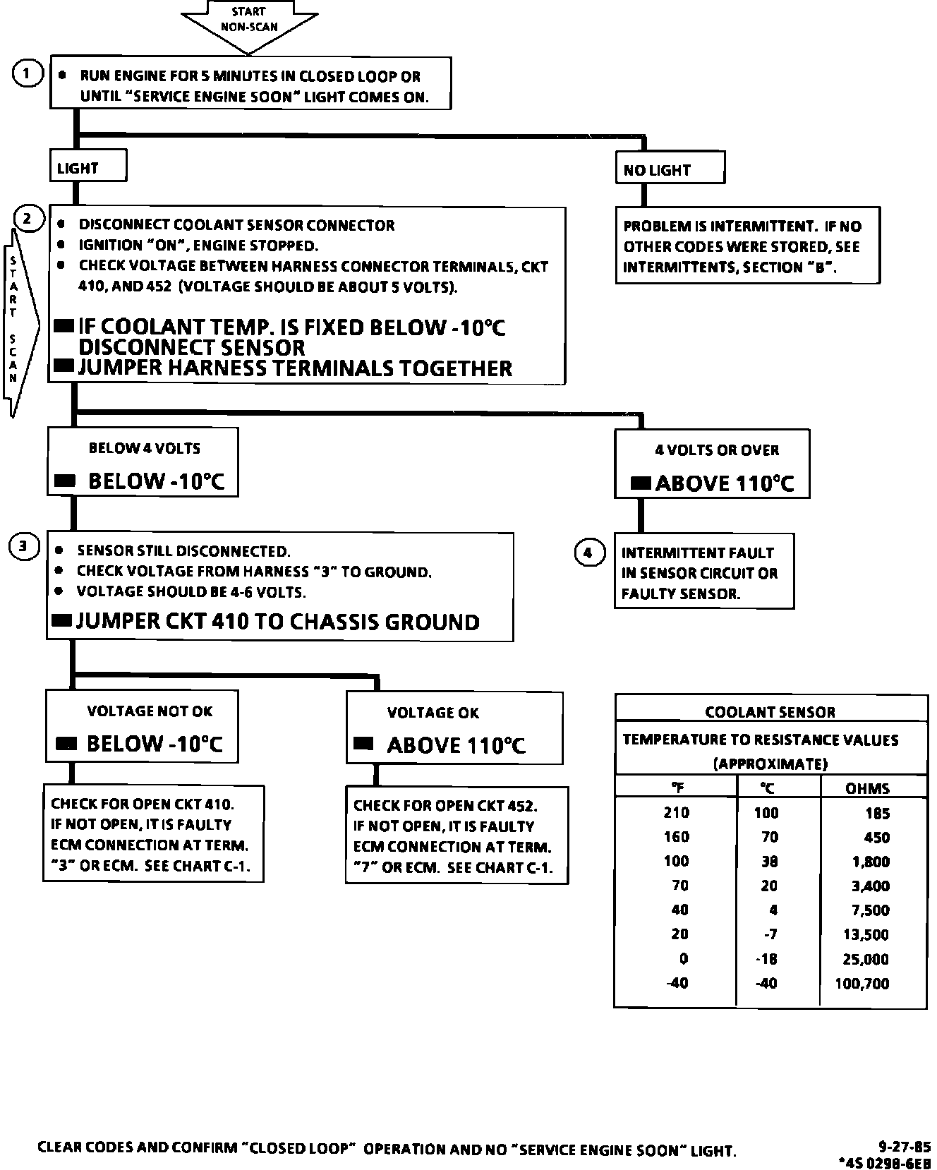 COOLANT SENSOR CIRCUIT CHART (SIGNAL VOLTAGE LOW)