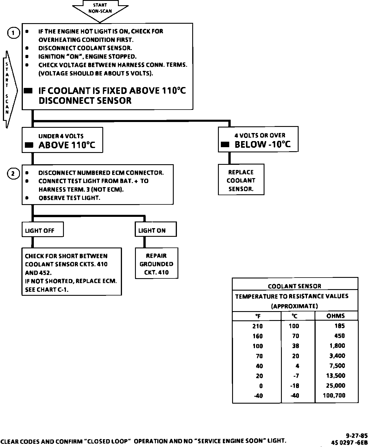 COOLANT SENSOR CIRCUIT CHART (SIGNAL VOLTAGE HIGH)