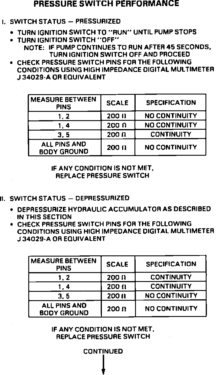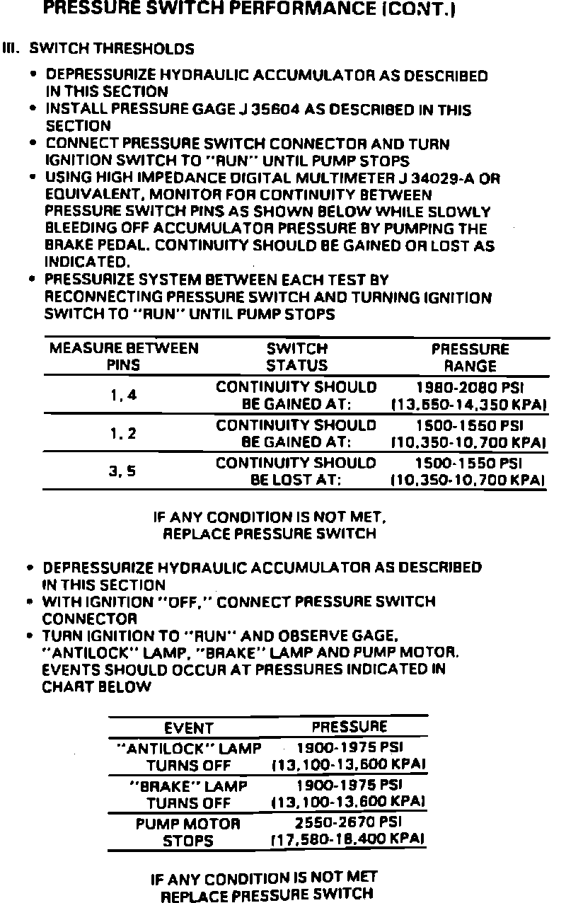 Fig. 22 Pressure Switch Performance, (Part 1 Of 2). 1989-90 6000:
