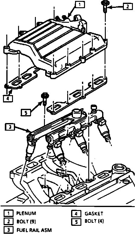 4. Remove EGR valve, throttle body and ignition wire plastic shield bolts from plenum.