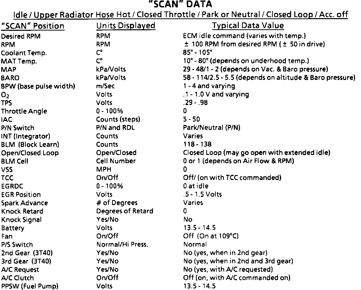 Typical Scan Data Values: