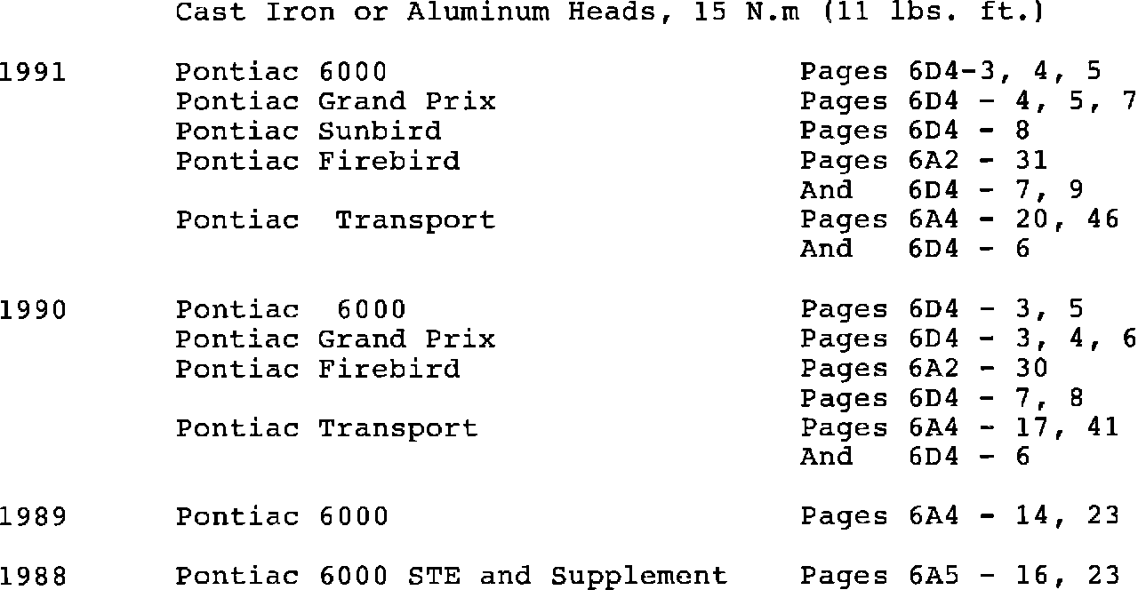 Models 1988-91 6000, GRAND PRIX, SUNBIRD,