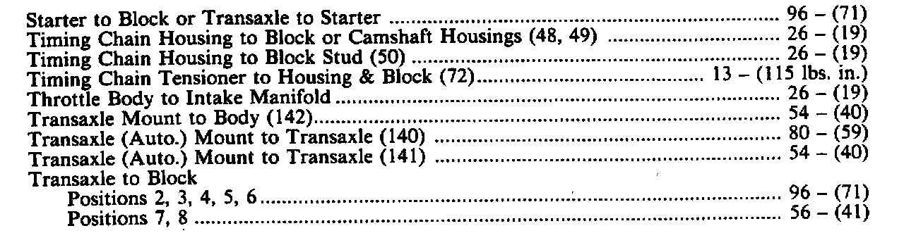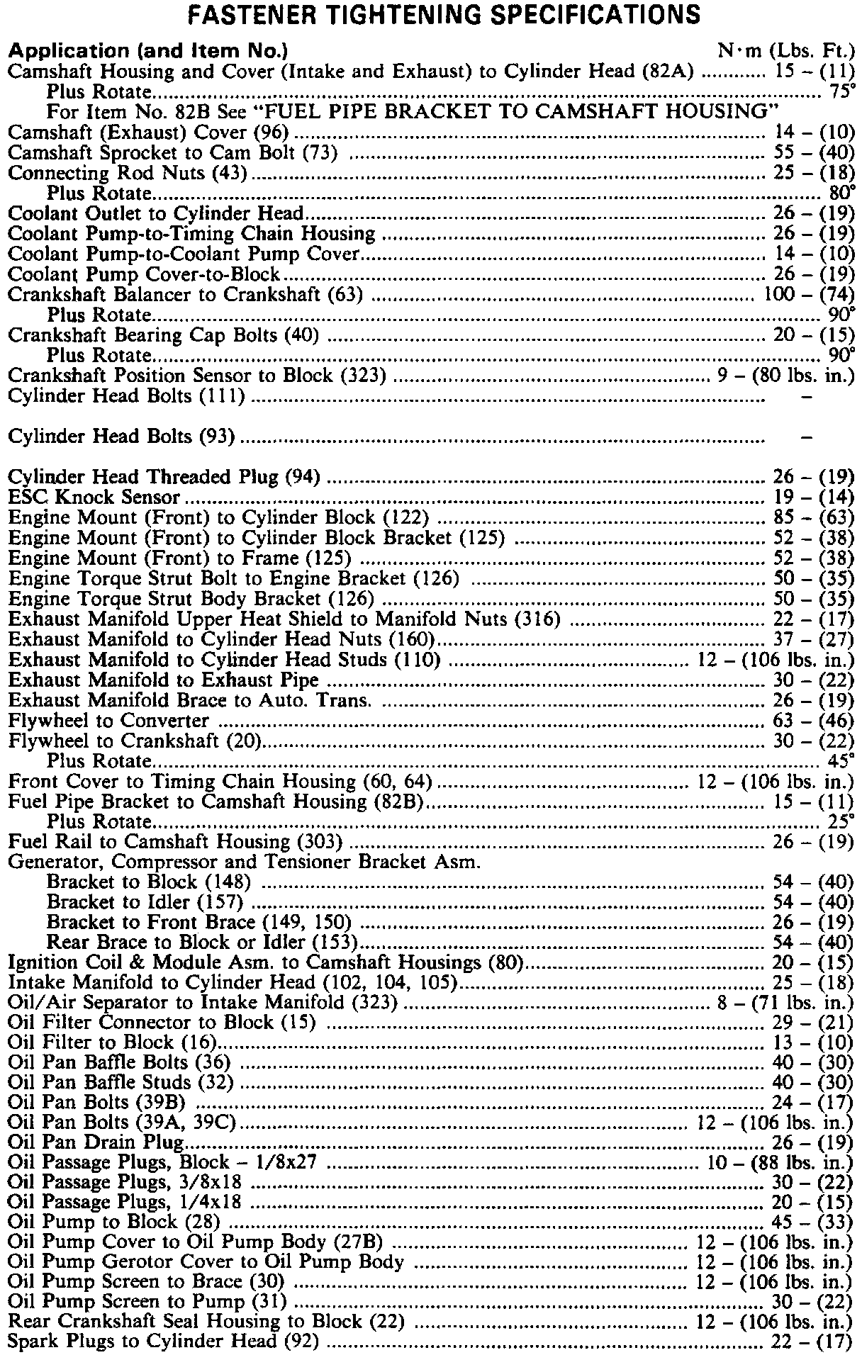 Torque Specifications: