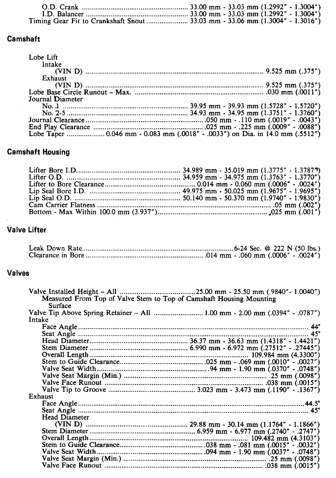 Engine Specifications: